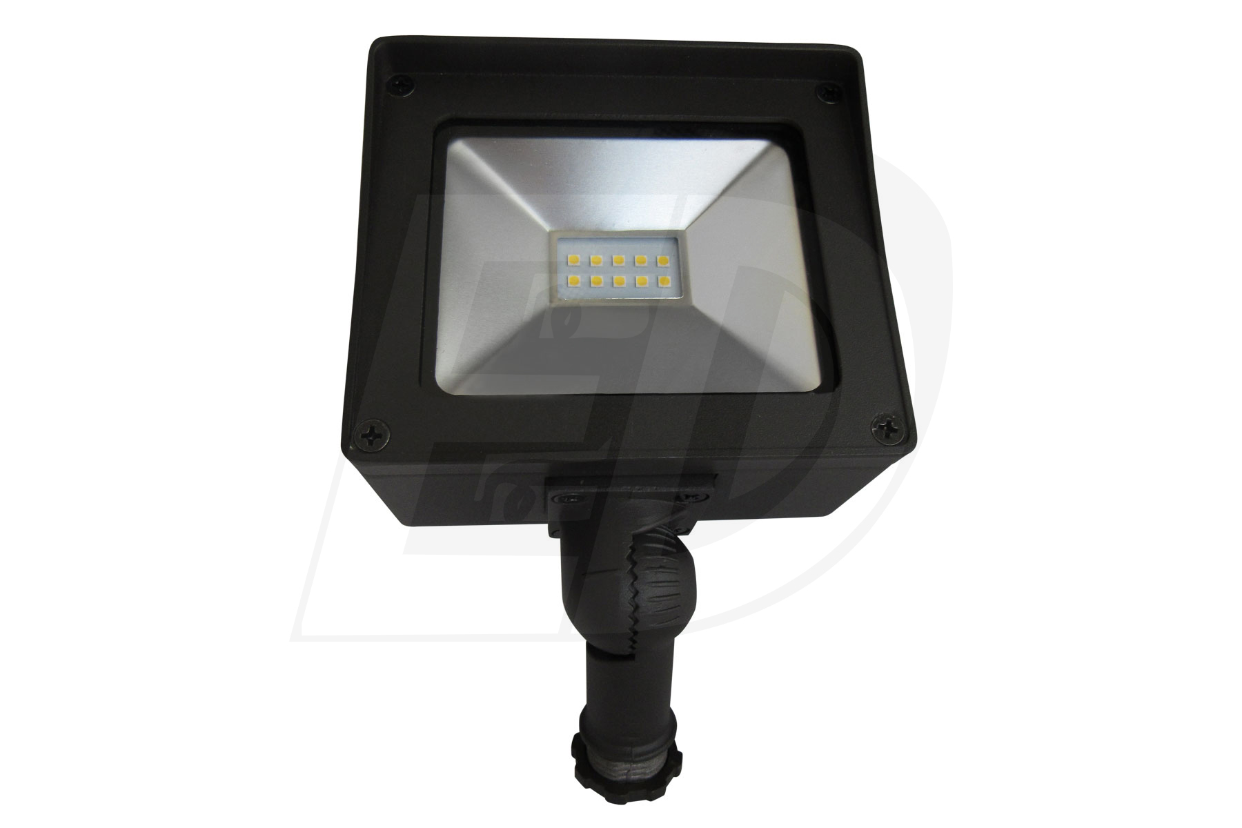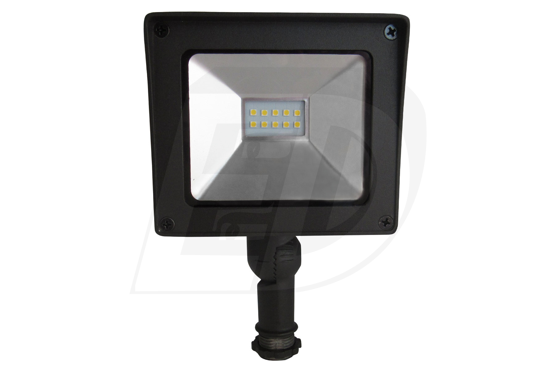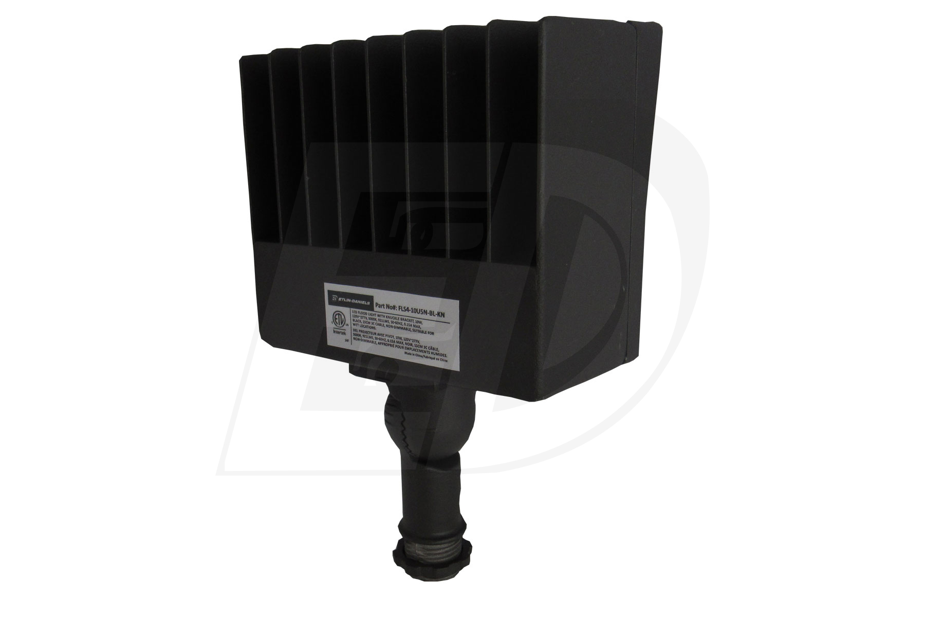 The Etlin-Daniels FLS4-10U5N-BL-KN LED Flood fixture offers the latest in both design and energy efficient performance. With its reduced size and textured architectural powdercoat finish, it will compliment a wide range of industrial, residential and commercial applications. The durable and watertight casting along with the tempered glass lens allow for long and energy efficient life. Fixtures available with either yoke or knuckle mount.